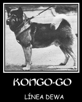 La línea Dewa, con rasgos más robustos y mayor influencia molosoide, tuvo un papel relevante en el desarrollo de ejemplares que posteriormente serían llevados a Estados Unidos. Kongo-go, macho de color negro sésamo, con tonos marrones y subcapa gris, fue un ejemplar venerado, ganador de todos los concursos, se le considera en cierta forma el ejemplar base para lo que hoy en dia es la raza Akita Americano.